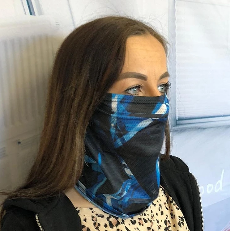 Das Tuch eignet sich hervorragend als Mund-Nase-Schutz indem es als Halstuch getragen und bei Bedarf einfach über Mund und Nase hochgezogen wird. Leichtes Atmen und kein Beschlagen der Brille garantiert.